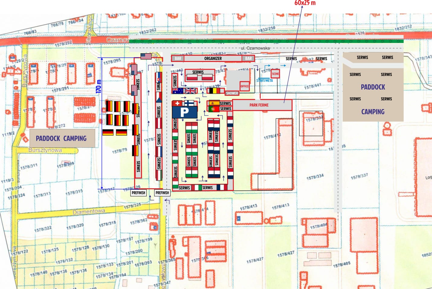 · Strefa organizatora – miejsce na odprawy i koordynację wyścigu.